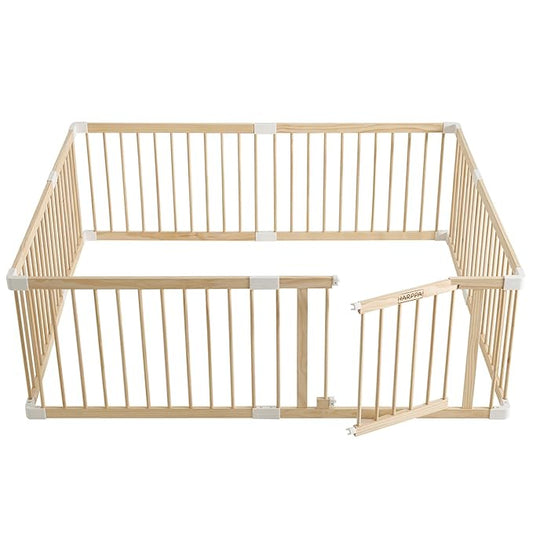 HARPPA Baby Gate Playpen for Babies and Toddlers Wooden Playpen Large Baby Fence Play Yards for Play Area (56x56x24 inches)