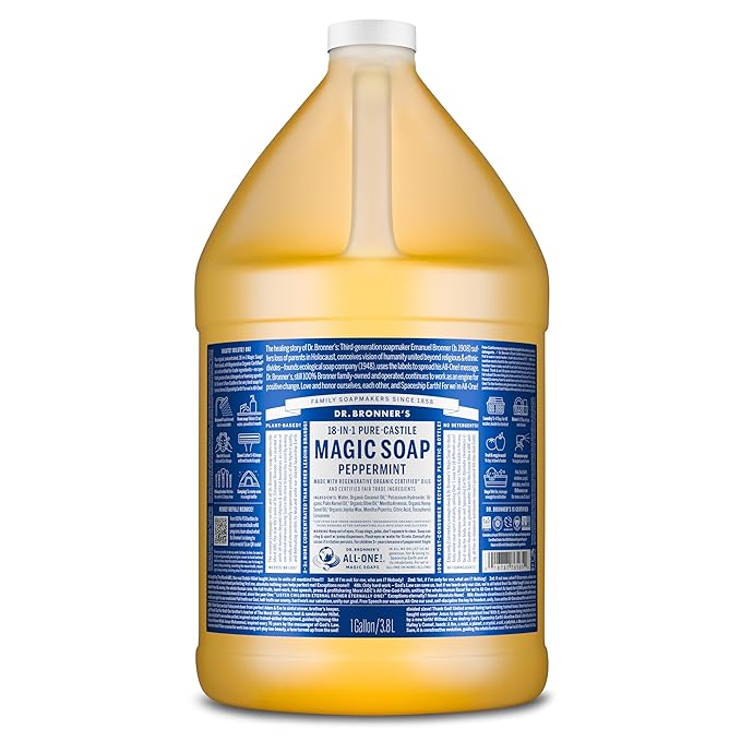 Dr. Bronner's Pure-Castile Magic Soap Liquid (Peppermint, 1 Gallon) – Made with Regenerative Organic Certified Oils - For Face, Hair, Laundry, Dishes- Hand Soaps & Body Wash