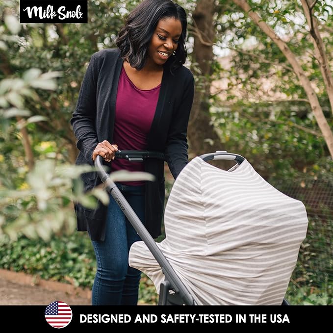 Milk Snob Original 5-in-1 Cover - Added Privacy for Breastfeeding, Baby Car Seat, Carrier, Stroller, High Chair, Shopping Cart, Lounger Canopy - Newborn Essentials, Nursing Top, Heather Gray Stripe