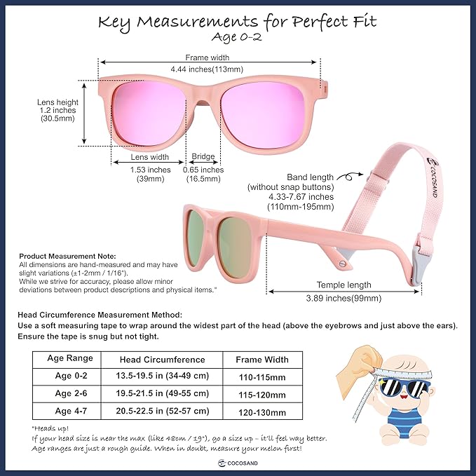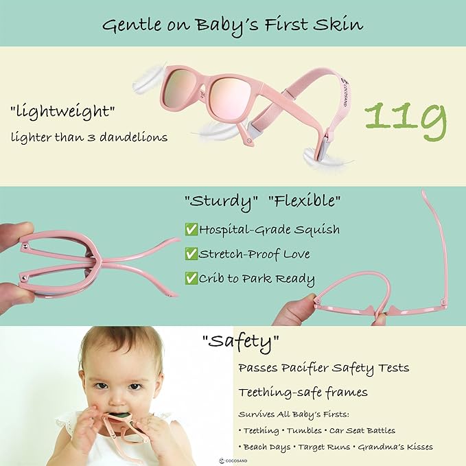 COCOSAND Flexible Polarized Baby Sunglasses with Strap UV Protection for Toddler Infant Girl Boy Age 0-24 Months