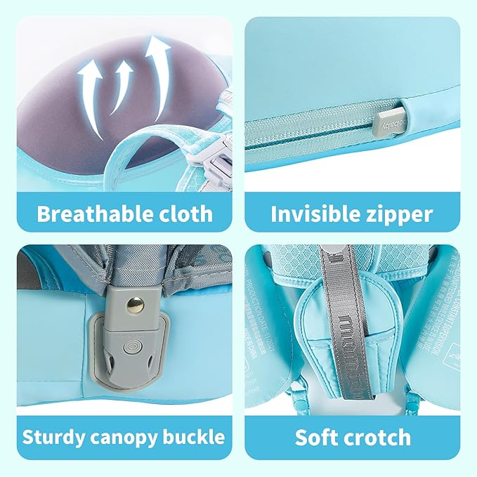 - Full protection: this non-inflatable baby swimming float has child security lock, safety and easy use. The Infant pool float has buoyancy tail, avoid flipping over and for feet rest. Detachable and adjustable UPF50+ sun canopy, keep baby's skin away from sun