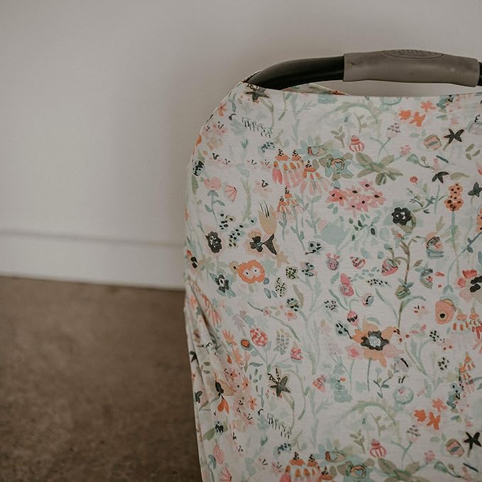 Parker Baby 4 in 1 Car Seat Cover for Girls - Stretchy Carseat Canopy, Nursing Cover, Grocery Cart Cover, High Chair Cover - Bloom