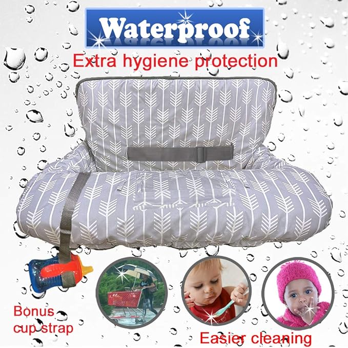 - 【Waterproof】 This upgraded grocery cart cover for baby and restaurant highchair cover applies waterproof cotton material to the top side. Machine washable with no shrinkage.