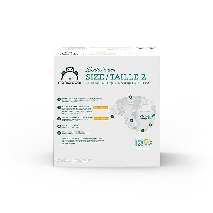 - IN THE BOX: Mama Bear Gentle Touch diapers for babies 12-18 pounds; size 2; 184 count (4 packs of 46)