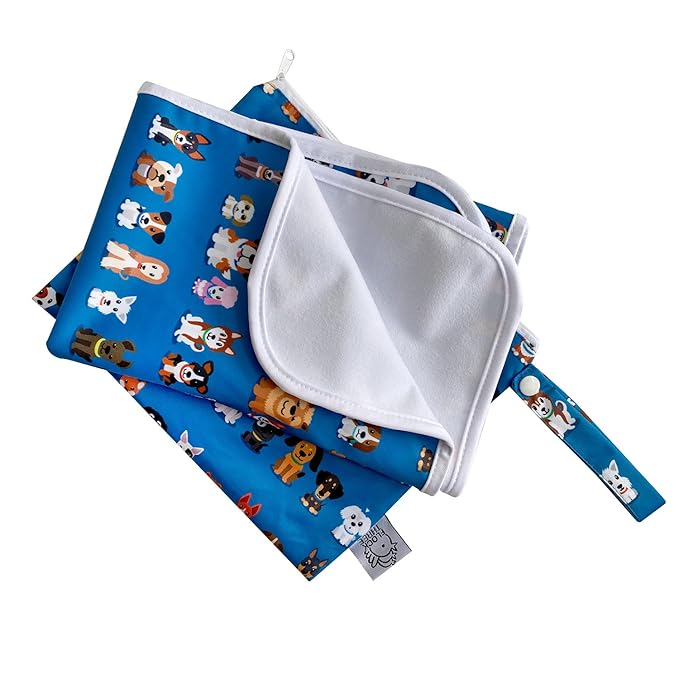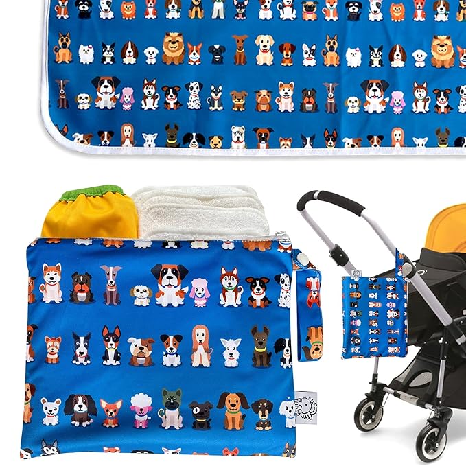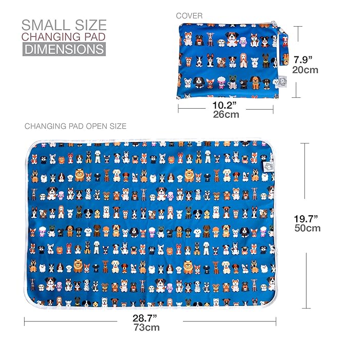 Flockthree Waterproof Baby Changing Pad with Storage Bag (28.7" X 19.7") Washable Wipeable Reusable Leak Proof Diaper Travel Mat Station Changing Mattress Liner Cribs Bed Cover, Dog Family