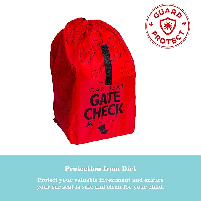 J.L. Childress Disney Baby Gate Check Bag for Car Seats - Travel Bag for Airplane, Fits All Baby & Infant Car Seats, Airport Accessories for Gate Check, Flying Essentials - Mickey Mouse, Red
