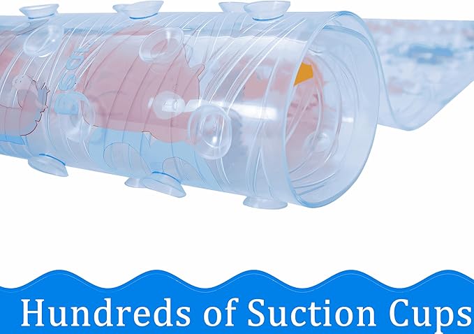 - 1.HUNDREDS OF SUCTION CUPS!! Our cartoon bath and shower mats feature hundreds of suction cups that help hold in place on smooth, clean surfaces. This bath mat is a great choice for the home, gym, spa and more!