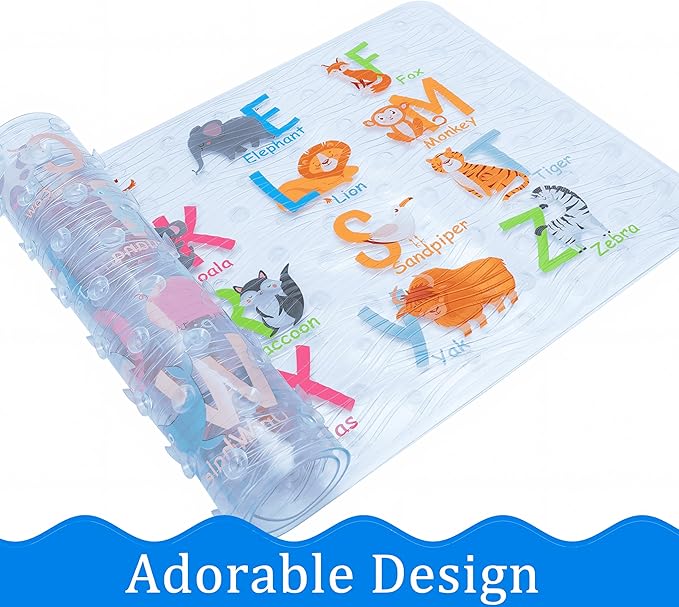 Bath Mats for Tub Kids,Baby Toddler - Large Cartoon Non-Slip Bathroom Bathtub Anti-Slip Shower Mats for Floor 35x15,Machine Washable XL Size Bathroom Mats (Alphabet)