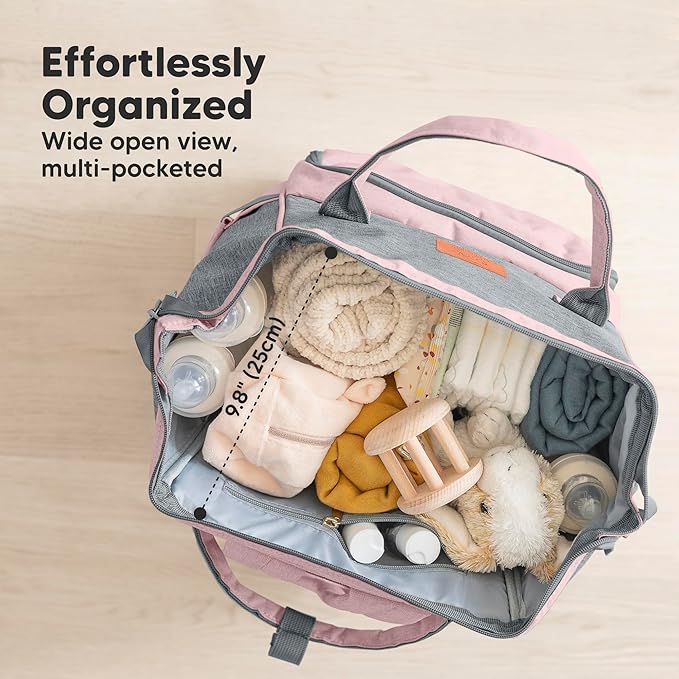 KeaBabies Baby Diaper Bag Backpack - Large Baby Bag for Boys, Girls, Waterproof Multi Function Travel Diaper Backpack with Changing Pad, Durable Travel Essentials for Moms and Dads (Pink Gray)