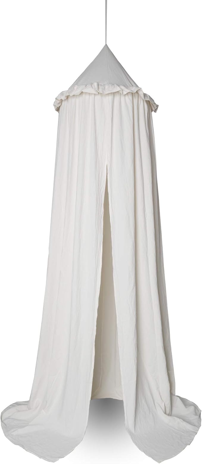 MAMERIA Kids Bed Canopy with Frills Cotton Hanging Tent Curtain Net for Reading Nook Hideaway Bedding Play Room Decor (Beige)