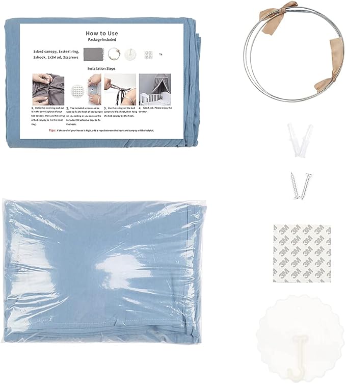- BIG SIZE & EASY TO ASSEMBLE- Kids canopy total height 95”, upper part length 20”, dome diameter 20”. Suitable for crib or cradle, toddler bed, play area mat or rug. Features easy entry and exit opening and cutest frills decoration! Package Included: 1 x bed canopy, 1 x steel wire, 1 x double sided tape & hook panel, 2 x self-tapping screws, 1 x user manual