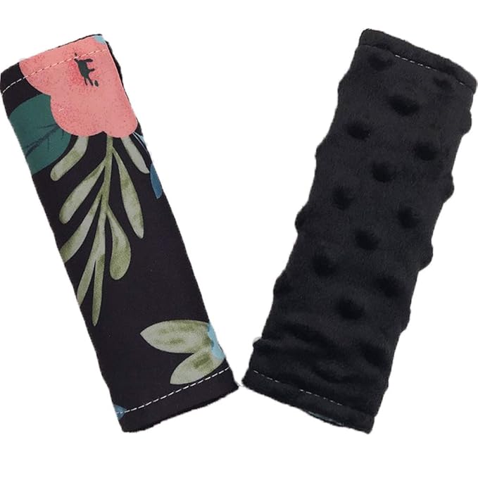 - ❄️FLOWER MINKY: Our car seat strap pad is designed with one side minky fabric and one side adorable floral print. You could use in minky style or flower style