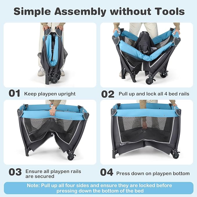 - 【Skin-Friendly Materials & Safe Details】 Our bed are made of breathable and skin-friendly fabrics, so babies can use them at ease.7-point supporting structure on the bottom comes with more steadiness. And the sturdy frame is made of iron tubes, which supports up to 35 lbs. Four round corners avoids bumping and scratching.
