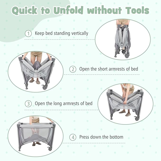 - 【Spacious & Comfortable Space】 Four-side mesh design enhances air ventilation and offer convenient observation for parents. The storage rack on the side provides ample storage space for all baby necessities, including diapers, bottles and more. The high quality polyester fabric features better wear resistance and breathability.