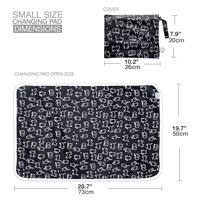 Flockthree Waterproof Baby Diaper Changing Pad with Storage Bag (28.7" X 19.7") Washable Wipeable Reusable Leak Proof Diaper Travel Mat Station Changing Mattress Liner Cribs Bed Cover, Cats