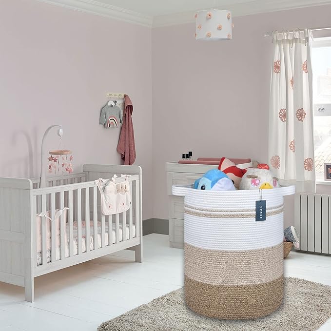 - 【Soft and Sturdy】Strong and reliable high storage basket, stand up on its own, no collision scratches, perfect to accommodate baby's clothes and other toys in nursery.