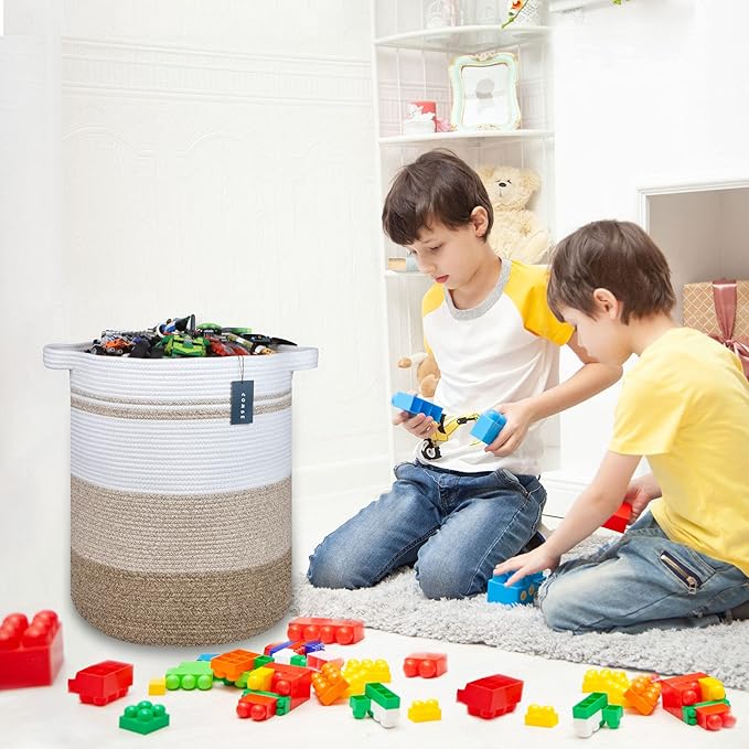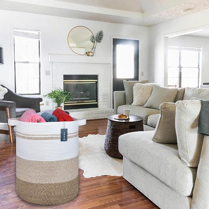- 【Large Size】15.7" x 21.7", Tall blanket basket which is perfect for throw pillows, blankets, toys, clothing, Comforter or Cushions. Whether it is helping your child develop clean living habits, or as a decorative basket for your friends. With the appearances and practicality, we believe COMSE cotton storage basket is perfect as a gift for Birthdays, Festival.