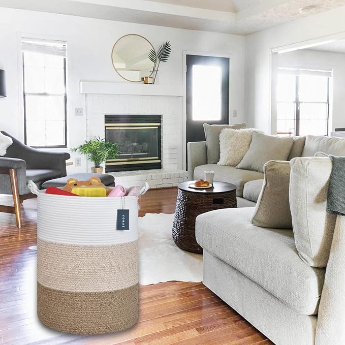 - 【Large Size】15.7" x 21.7", Tall blanket basket which is perfect for throw pillows, blankets, toys, clothing, Comforter or Cushions. Whether it is helping your child develop clean living habits, or as a decorative basket for your friends. With the appearances and practicality, we believe COMSE cotton storage basket is perfect as a gift for Birthdays, Festival.