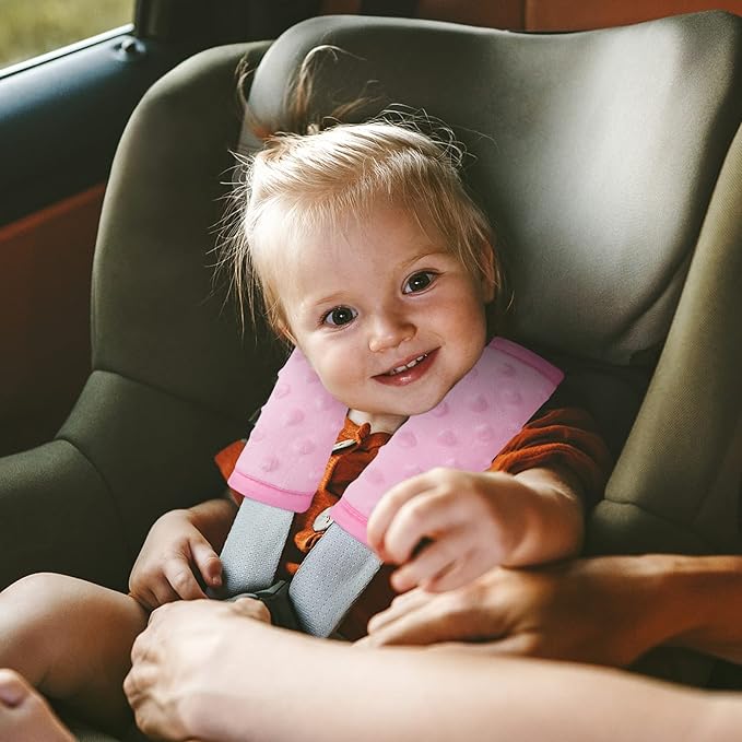 Pro Goleem Car Seat Strap Covers for Babies Girl Soft Car Seat Strap Shoulder Pads for All Car Seats, Stroller, Pushcar, Pink