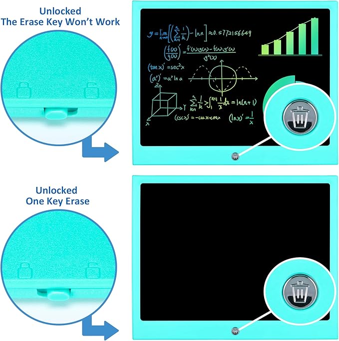 - Safely and Eye-friendly: The colorful writing board uses new LCD pressure-sensitive technology, LCD screen, no blue light,no radiation, no glare, all protect your kids eyes be safe and comfortable for long time drawing.