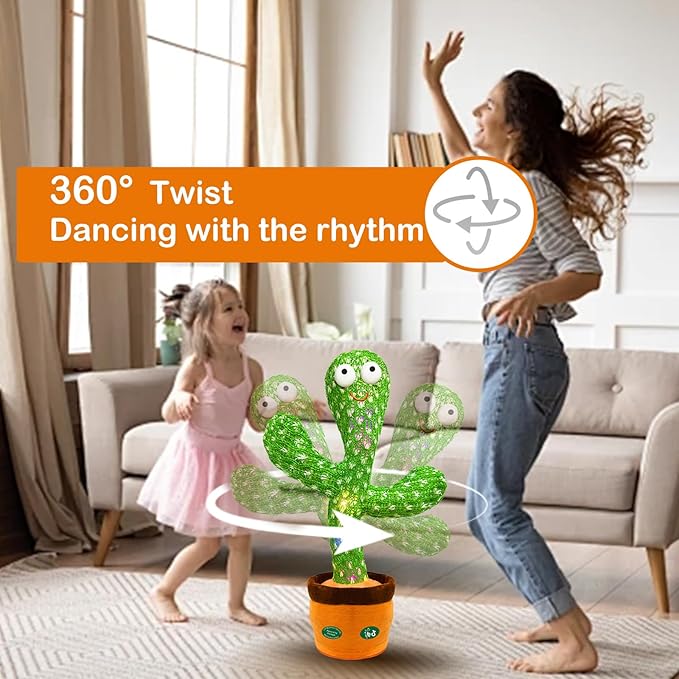 - LED COLORFUL FLASHING LIGHT:Singing cactus toy mimics sings including nursery rhymes and TikTok hits in turn. The cactus dancing toy will twist his body and have rhythmic colored LED lights when singing. Apply to relieve adult stress and create intertesting atmosphere