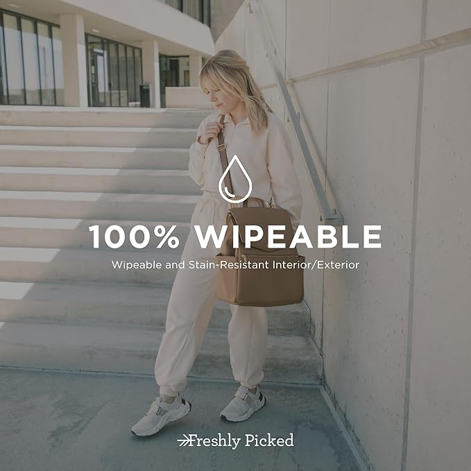 - Freshly Picked Diaper Bag: Crafted from premium vegan leather that's also wipeable, the Classic boasts a stain-resistant nylon interior, custom matte hardware, and YKK zippers. A sturdy and sleek diaper backpack that you'll love to use and proudly pass on.