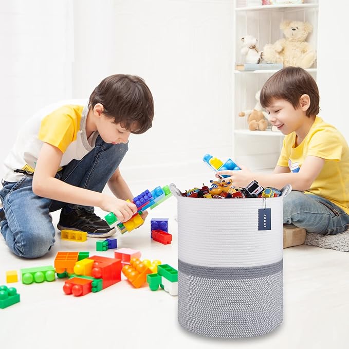 - 【Large Size】15.7" x 21.7", Tall blanket basket which is perfect for throw pillows, blankets, toys, clothing, Comforter or Cushions. Whether it is helping your child develop clean living habits, or as a decorative basket for your friends. With the appearances and practicality, we believe COMSE cotton storage basket is perfect as a gift for Birthdays, Festival.