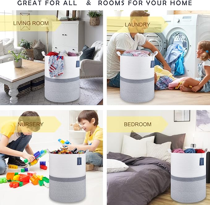 - 【Notes】Laundry basket fold up during transported, it will return to its best shape if filling it with towels or blankets. Fast remove the creases by ironing it. We only offer high quality products so we are sure you will be satisfied with our cotton rope basket. If you have any dissatisfaction, please contact us and We will provide you with a satisfactory solution.