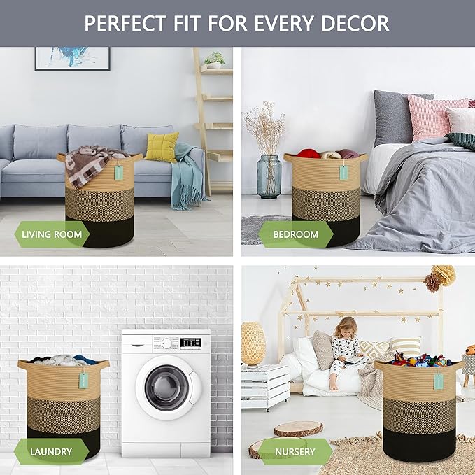 - 【Multi-purpose Design】A stylish, practical alternative to plastic laundry hamper or wicker basket storage solutions. Originally designed as a laundry basket, blanket basket, or nursery basket, it can be used more. You can use this woven rope basket as a dirty clothes basket, toy basket bin, baby laundry basket, laundry bin, stuffed animal basket, baby clothes basket, plant basket, pillow basket, towel basket and even a pet toy basket. The possibilities are endless. Carefully chosen colors and multiuse design will also make this a unique home decor in your home.