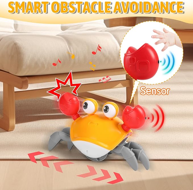 - SMART SENSING CRAB TOY: The electric crab crawling toys feature an infrared sensing design, when it encounters an obstacle during moving, it will move in the opposite direction in time. The light and music makes it very attractive to kids. Sensor crab toy is best gift for boys girls 0-2 1-2 1-3 2-3 2-4 years old