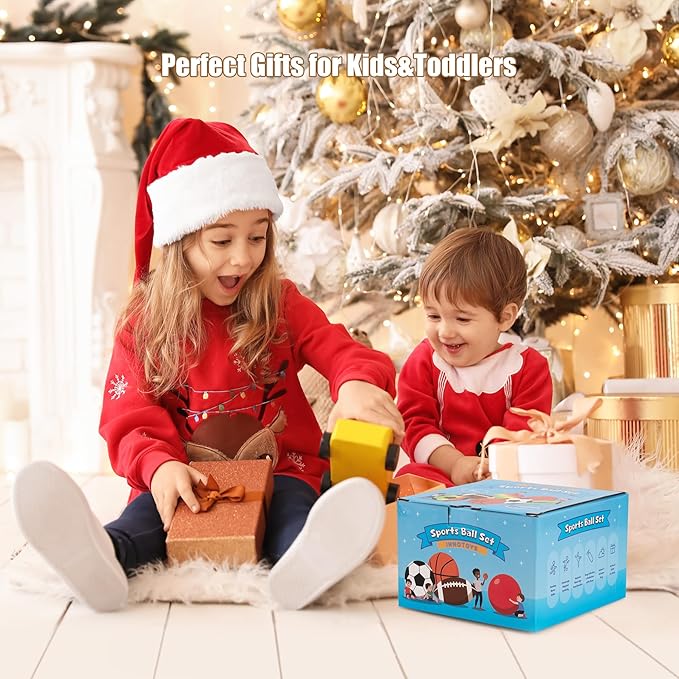 Balls for Toddlers Kids - 7 Pack 5" Small Playground Balls Soft Rubber - Indoor Outdoor Toddler Toys - 2 Footballs, 2 Basketballs, 2 Soccer Balls 1 Kickball -Birthday Gift Boys Girls 1-3 3-5