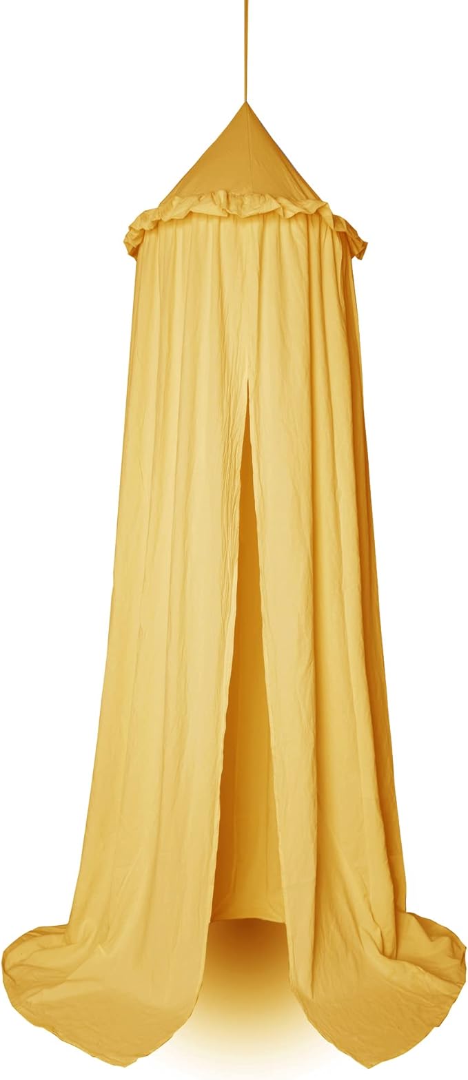 MAMERIA Kids Bed Canopy with Frills Cotton Cover Net for Baby Crib Reading Nook Curtain Hideaway Hanging Round Tent Nursery Bedding Play Room Decor (02CNP0002-YL)