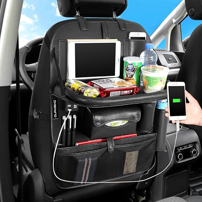 - ✅【Premium Material】This car backseat organizer is made of high quality PU leather with perfect waterproof property and good durability.It also can protect your seats from scratches,scuff marks and dirt.When you accidentally spill coffee or drink on it, only need to wipe off the stains with a damp cloth.