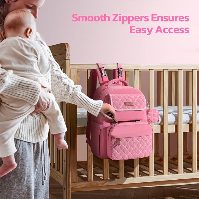 - Designed for Convenience:extra-wide opening makes this diaper backpack easy to find essentials in a pinch. Dual zippers make it easy to access and close even with one hand, a built-in USB charging port provides on-the-go phone access, and a security pocket on the back is designed for cell phones, keys and cards