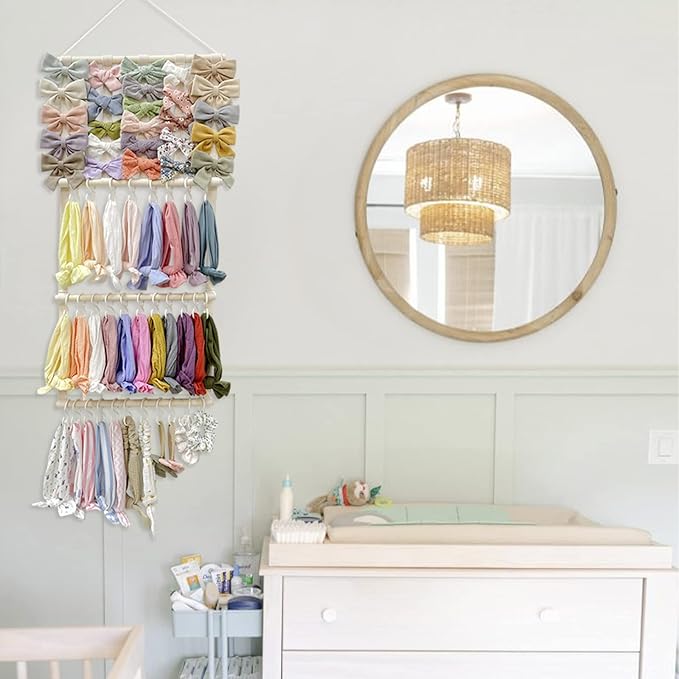 - Great Present Ldea : The baby girl headband organizer is a great organizer for hair accessories collectors. The newborn headbands and bows hanging organizer is the perfect present for birthdays, newborn presents, baby shower parties, family photography, holidays.