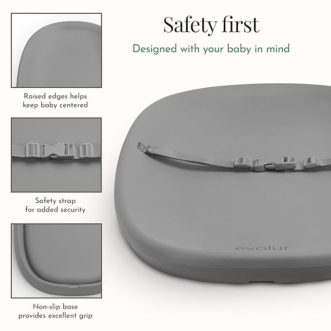 Evolur Eva Baby Changing Pad in Dark Gray, Soft, Lightweight and Portable Changing Pad, Fits All Changing Table, Waterproof Firm Padding