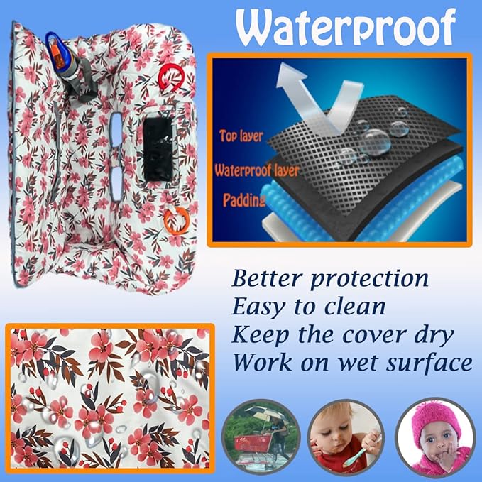 - 【Waterproof protection】 Our grocery cart cover and high chair cover restaurant boast an added waterproof layer, ensuring protection on wet surfaces. This feature sets it apart from most other shopping cart seat cover for infant and toddler.