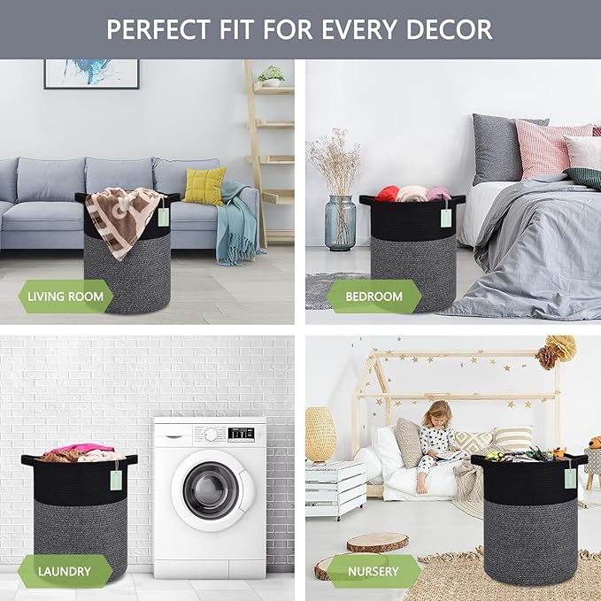 - 【Multi-purpose Design】A stylish, practical alternative to plastic laundry hamper or wicker basket storage solutions. Originally designed as a laundry basket, blanket basket, or nursery basket, it can be used more. You can use this woven rope basket as a dirty clothes basket, toy basket bin, baby laundry basket, laundry bin, stuffed animal basket, baby clothes basket, plant basket, pillow basket, towel basket and even a pet toy basket. The possibilities are endless. Carefully chosen colors and multiuse design will also make this a unique home decor in your home.