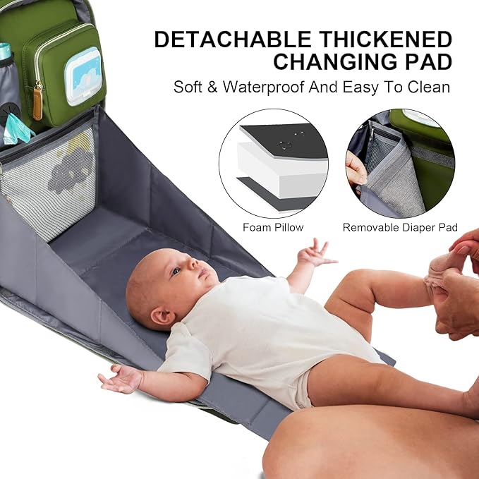 Diaper Bag Backpack with Changing Station, Baby Diaper Bag Organizer for Moms Dads Large Baby Changing Bags