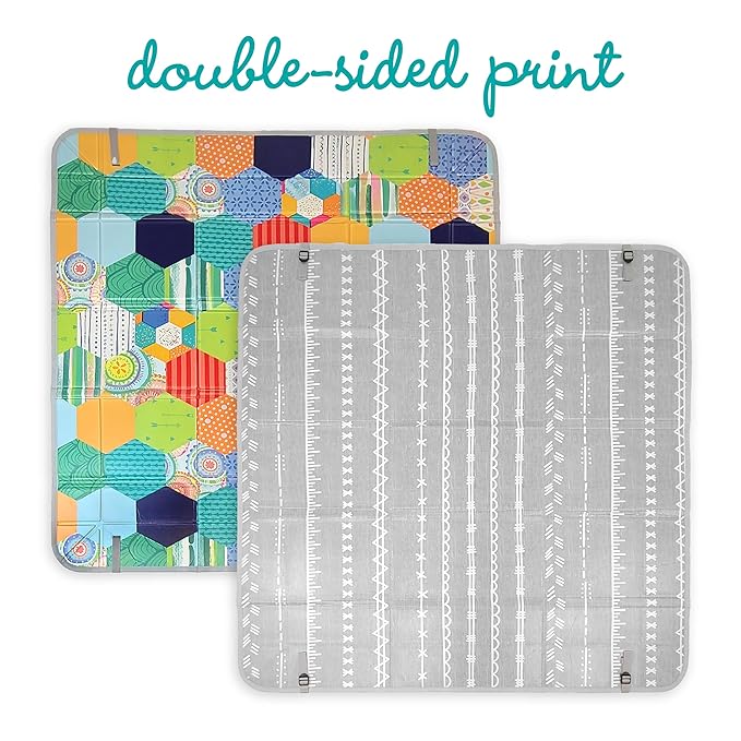 - REVERSIBLE DESIGN FOR STYLE FLEXIBILITY: One side features bright colors to engage baby, the other is a neutral tone that blends into your home – perfect for shared spaces