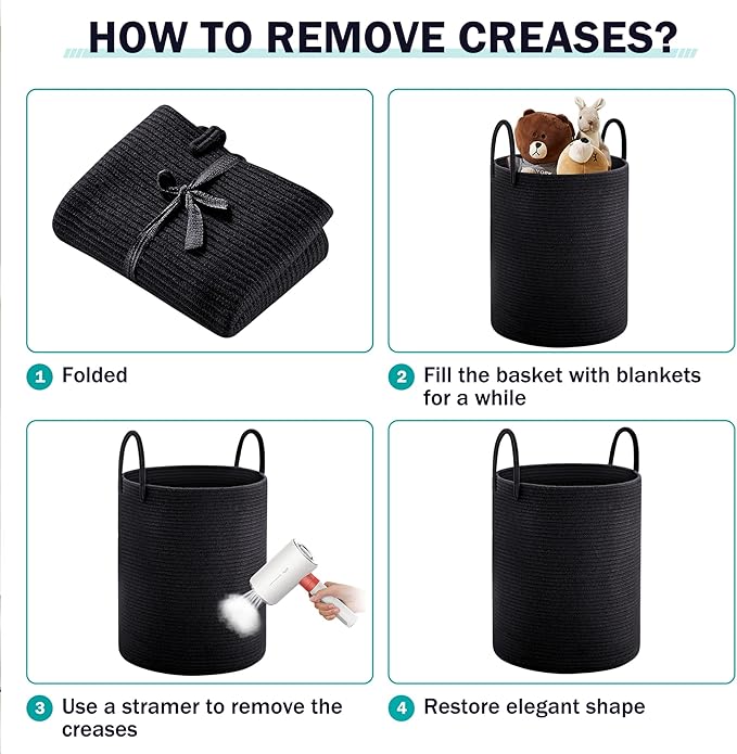 - 【Multipurpose Storage Baskets】58L capacity basket can keep things organized in a stylish and decorative way. You can use them to store extra towels, blanket, clothing, toys for baby and dogs, books, pillows or any other household items around the house, anything you can imagine