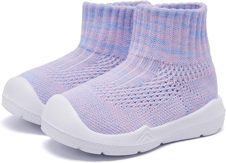 • Friendly Sock-like Upper: Sock-like stretchy textile construction upper hugs the foot to keep them comfortable and flexible when babies are on the move. Baby sock shoes made of soft fabric knit are also friendly to the skin, healthy, and very safe for infant babies.