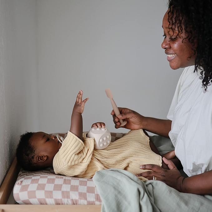 mushie Extra Soft Muslin Fitted Changing Pad Cover (Natural Check)