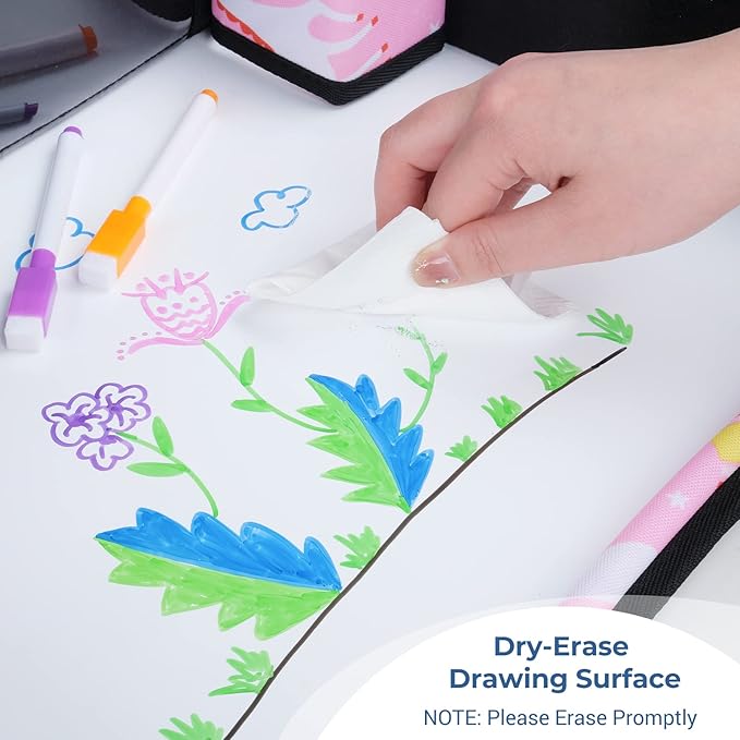 - Kids Travel Tray: This travel tray is a very convenient product that allows children to enjoy drawing, playing with toys, watching tablets, eating and so on in the car during the road trip. Our car seat travel tray comes with 2 cup holders and 8 erasable markers, because the surface of the baby and toddler travel tray is smooth, even if it is scribbled, it can be easily erased with a paper towel and can be used repeatedly without worrying about leaving marks.
