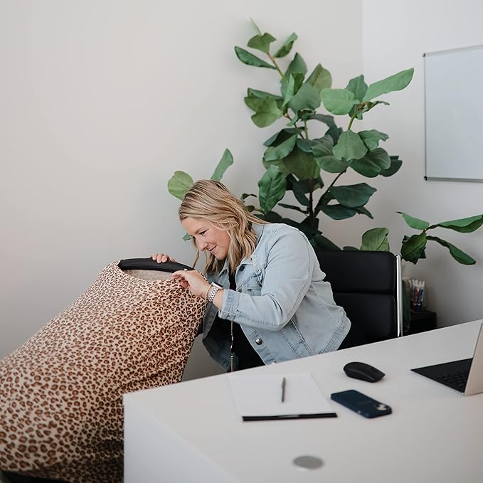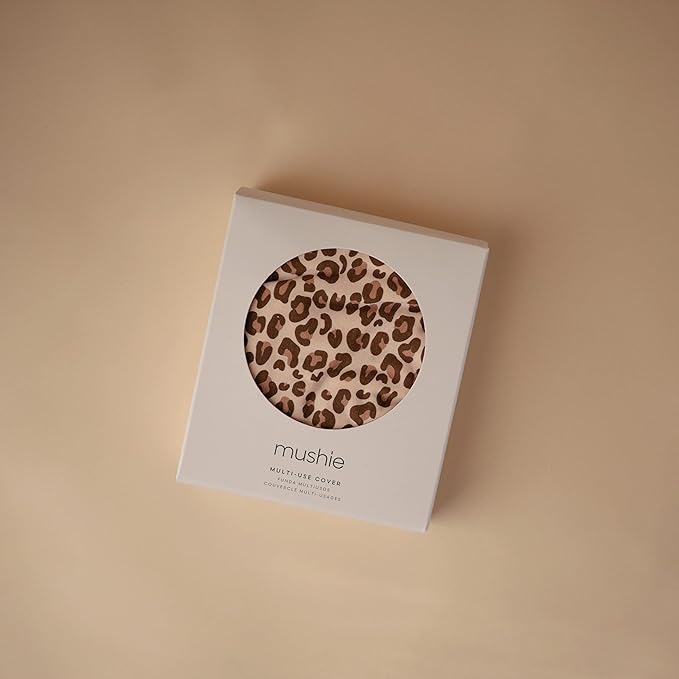 mushie Baby Car Seat Canopy Cover | Breathable & Stretchy Multi Use Cover for Breastfeeding, Nursing, High Chair, Shopping Cart, Strollers (Leopard)