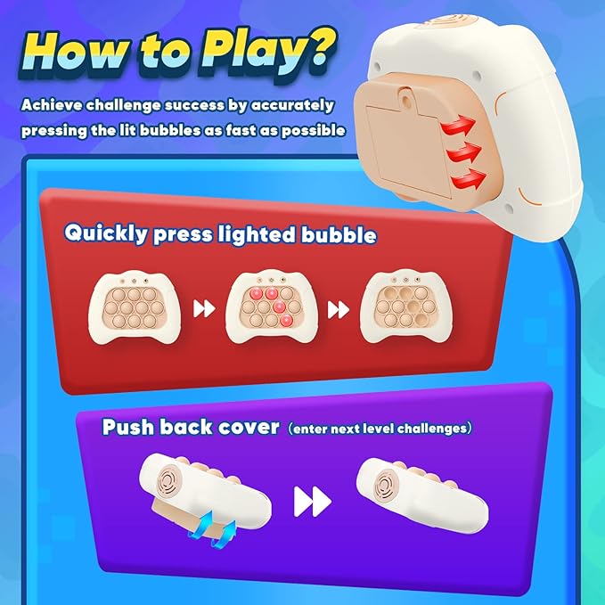 - 【Upgraded Educational Toy】Addictive classic press bubble game meets fast electronic game! Our newly released handheld toys, which is more simple and more fun than most simon game toys. Kids will engage in positive thinking, hand-eye coordination, and brain training during play challenges filled with lights and sounds, promoting your child's sensory development.
