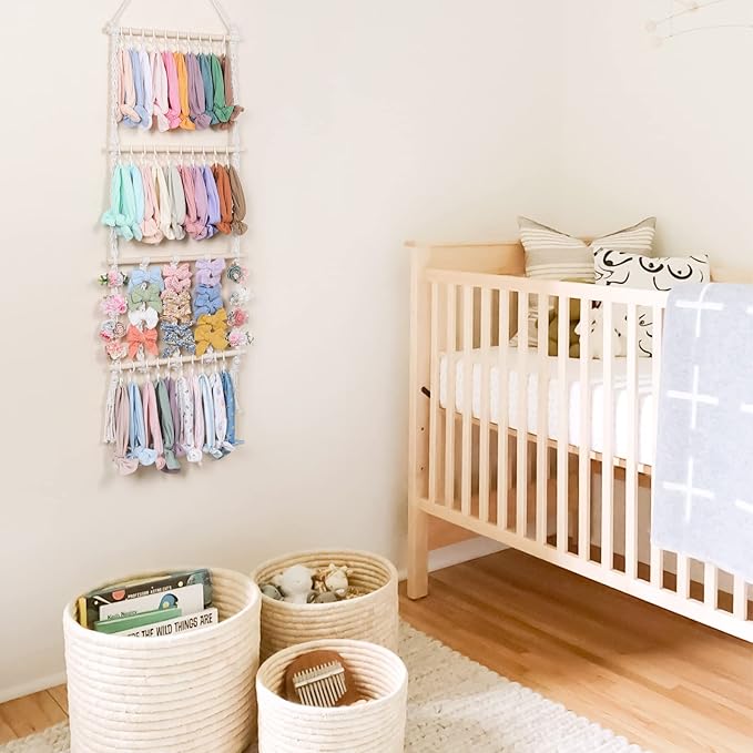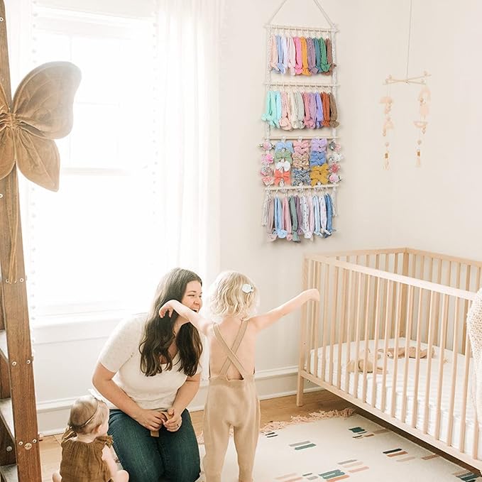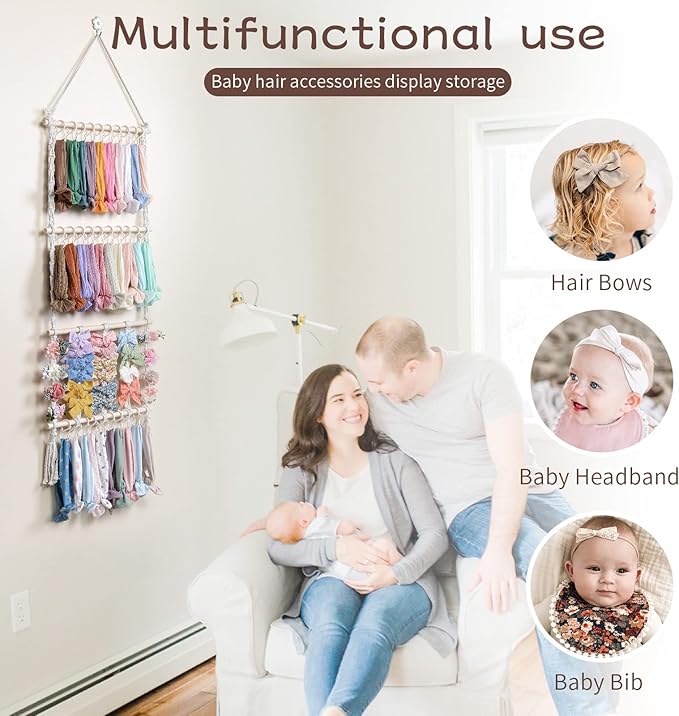 - Great Present Ldea : The baby girl headband organizer is a great organizer for hair accessories collectors. The newborn headbands and bows hanging organizer is the perfect present for birthdays, newborn presents, baby shower parties, family photography, holidays.