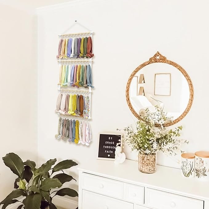 - Great Present Ldea : The baby girl headband organizer is a great organizer for hair accessories collectors. The newborn headbands and bows hanging organizer is the perfect present for birthdays, newborn presents, baby shower parties, family photography, holidays.