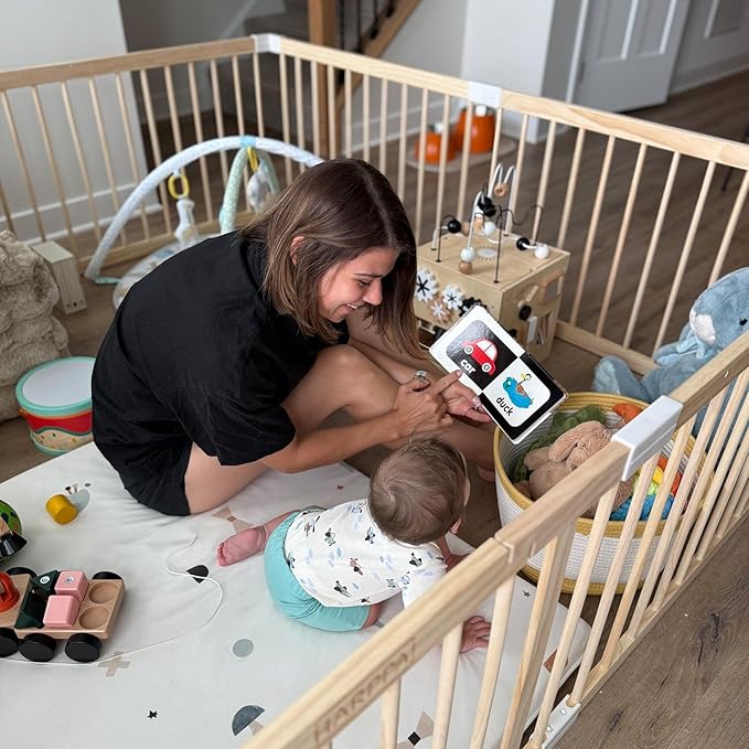 - Sturdy and Safe: HARPPA baby playpen play yards wood for babies and toddlers is made of solid NEW ZEALAND pine wood, strong and safe.With smooth edges and surfaces, minimizing sharp corners and reducing the risk of injury to children