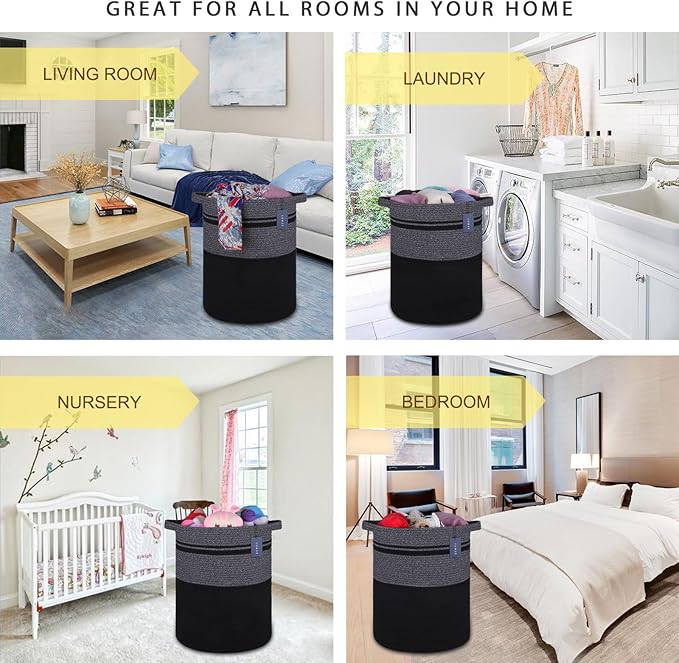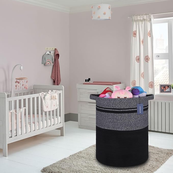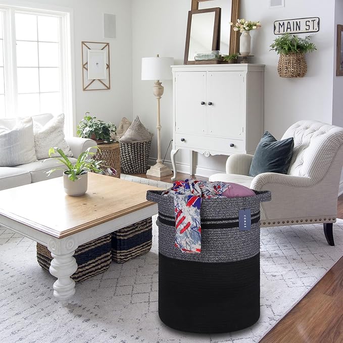 COMSE Extra Large Blanket Basket, Tall Laundry Basket, Nursery Hamper, 15.7”x 21.7”, Cotton Rope Woven Laundry Hamper for Storage Toys Clothes Towels, Black